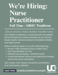 Umatilla County Public Health is dedicated to promoting, protecting, and preserving the health of our community.