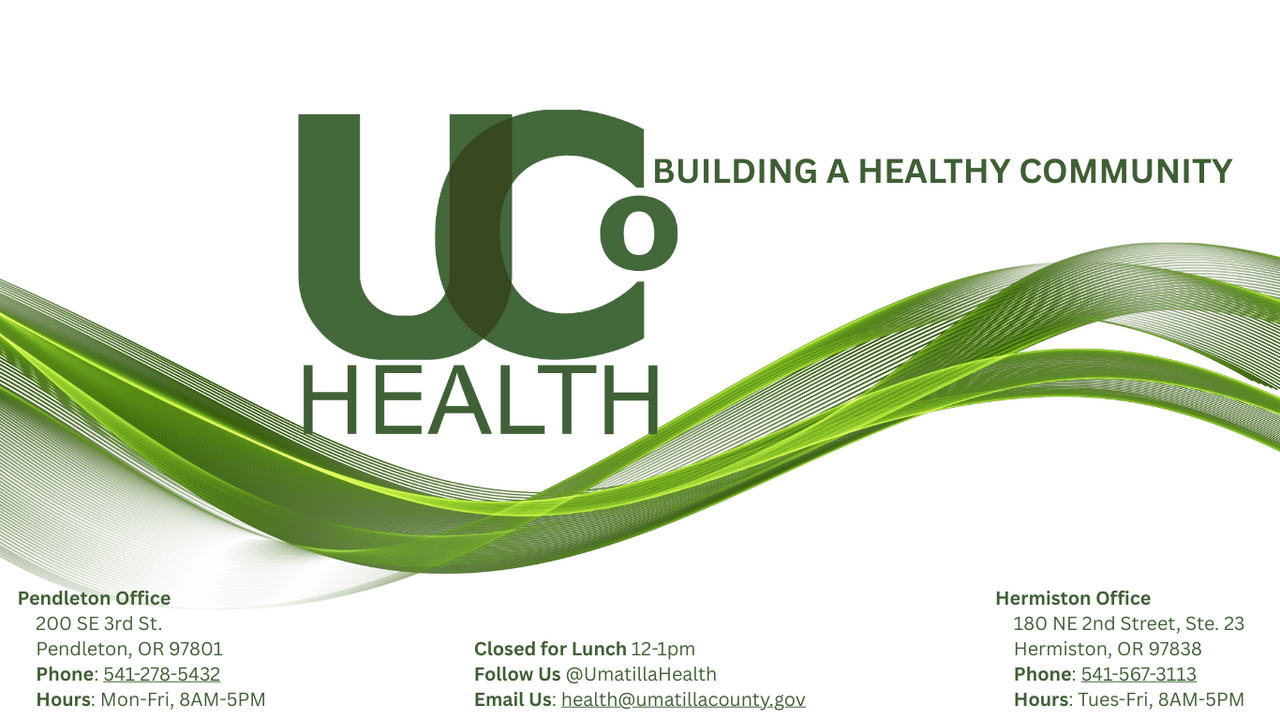 Please contact the Umatilla County Public Health Department at 541-278-5432 or email health@umatillacounty.gov for more information.