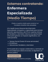 Bio: With over 42 years as a proud Umatilla County resident, I bring both deep-rooted community ties and a passion for public health to my work at UCo Health. Since joining the team in 1998, my journey has been one of growth and dedication. Starting out as a bookkeeper and front desk support, I have embraced new challenges and opportunities, leading to my promotion as Office Manager in April 2024.