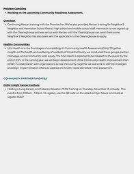 The Community Health Assessment provides a snapshot of our county, as well as our state and nation. This helps to identify the community's unmet needs so that programs in the future can help fill the gaps. Please review the Umatilla County Community Health Assessment to access this important information on our community.